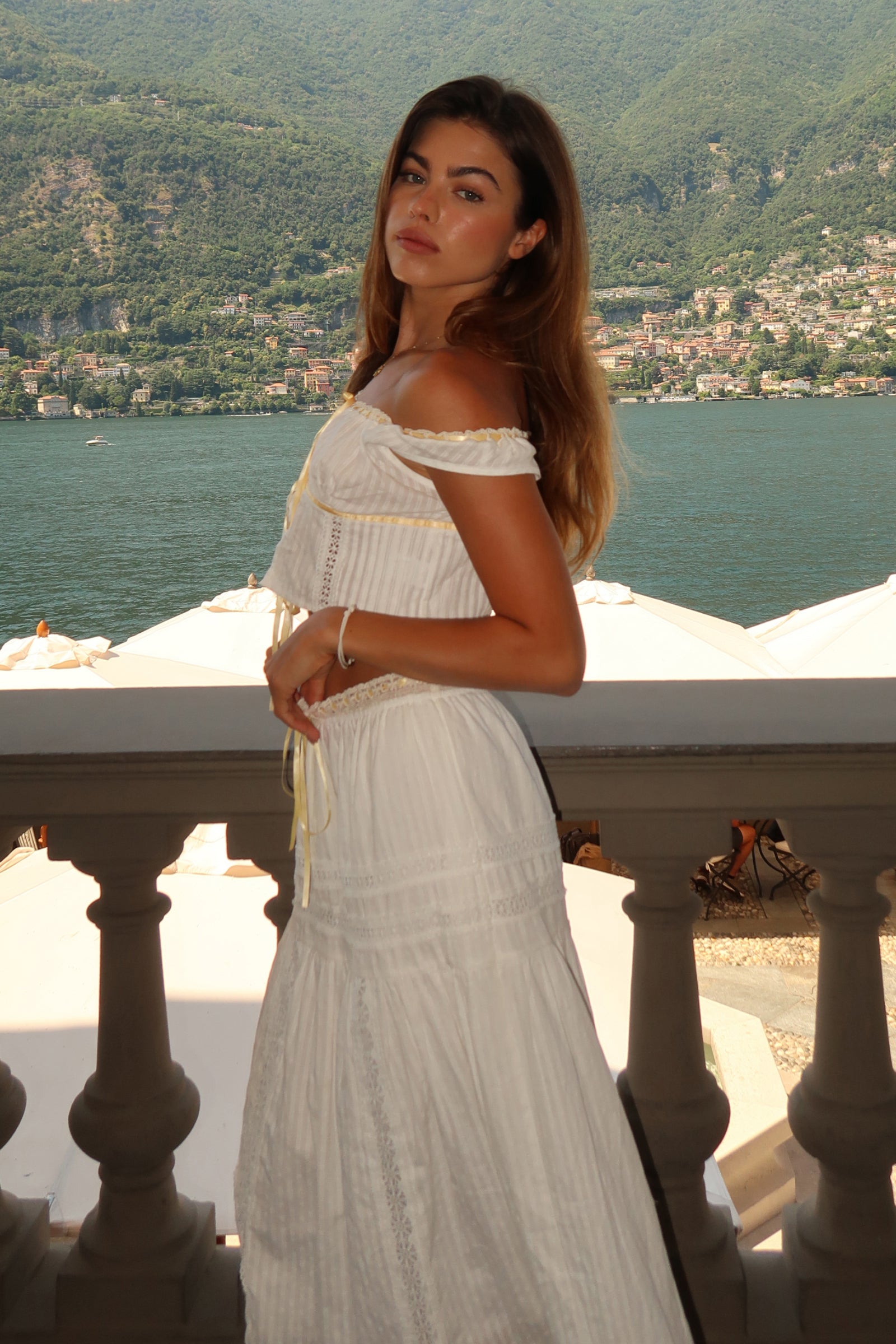 The Sol Top is a dreamy cropped top designed to capture the essence of sunlit days and slow summer moments. Made from soft, breathable cotton, it features a flattering off-shoulder neckline, ruched bust, and adjustable front ties for the perfect fit. The subtle lace details and lightweight texture make it a go-to for warm weather styling — whether you’re lakeside, on a terrace, or exploring hidden streets.